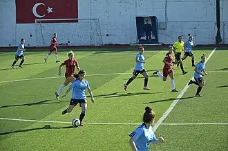 Marmara Üniversitesi Spor (in blue/black kit) at home match against Konak Belediyespor in the 2013–14 season.
