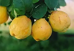 Quince fruit, such as used in Marmelada de Santa Luzia, on a tree