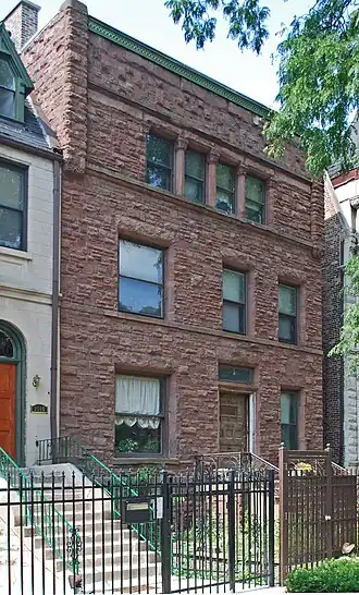The Martin Roche–John Tait House is a historic house located at 3614 S. Martin Luther King Drive in the Douglas community area of Chicago, Illinois. The house was the home of architect Martin Roche, half of prominent Chicago architectural firm Holabird & Roche, from 1888 until 1917. Roche designed the house for his sister Bridget Louise and brother-in-law John Tait; as he was unmarried and consequently a key part of their family, Roche moved into a third-floor suite to live with the couple. He gave the house a Romanesque design; the design has similarities with his work at Fort Sheridan at the time, though the Fort Sheridan homes are less plain. The flat, rough-coursed sandstone front facade of the house is a sharp contrast to the surrounding homes, many of which are Queen Anne designs with extensive detail work.[2]