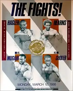 Marvin Hagler vs. John Mugabi was a professional boxing match contested on March 10, 1986, for the WBA, WBC and IBF middleweight titles.[1] Along with Thomas Hearns vs. James Shuler, the bout co-main evented a boxing event billed as The Fights!