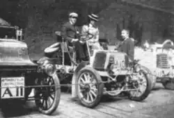 Kennard and her husband were both keen motorists and each owned an automobile. She bought a Napier eight horsepower two-cylinder, which she allowed to be entered for a 1,000-mile race by S F Edge with herself as passenger. Kennard wrote kindly of her husband's choice of the Napier, but she preferred herself to drive a De Dion voiturette. Her driving was not without incident, and she turned her car over on the tramlines in Nottingham.[11] In 1903, she published a novel called The Motor Maniac, based around the subject of automobiles. The Spectator gave it a poor review, suggesting that people who did not own an automobile would find the details of "belts, speeds, makes of car, &c... exasperating".[12] However, The Times later called Kennard "a very widely read and prolific author of the mid-eighties" who wrote "rattling good tales".[13]