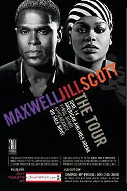 Maxwell & Jill Scott: The Tour is a co-headlining concert tour by American recording artists Maxwell and Jill Scott.[1] Heavily playing in the United States, the tour supported Maxwell's fourth studio album BLACKsummers'night. Singer Erykah Badu joined as a featured performer on select dates.[2] Maxwell and Scott planned a second leg of the tour for the summer of 2010 (with Melanie Fiona as an opening act), however the leg was canceled abruptly.[3] It was later revealed Maxwell postponed the tour dates until 2011, without Scott joining.[4]