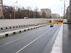 In 2011–2015, 400 km of new roads were built in Moscow. In particular, the reconstruction of Varshavskoye, Kashirskoye, Mozhaiskoye, Leningradskoye, Yaroslavskoye highways, Balaklavsky Avenue and several interchanges on the Moscow Ring Road were carried out. In December 2015, the ten-year construction of the Alabiano-Baltiysky Tunnel was completed. From 2010 to 2015, the authorities have completed the construction or reconstruction of 12 interchanges of the Moscow Ring Road and radial routes.[46][47][48]