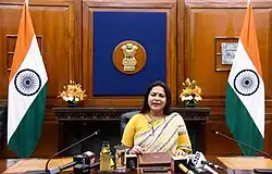 Meenakshi Lekhi (born 30 April 1967) is an Indian politician who served as the Minister of State for External Affairs and Culture of India from 7 July 2021 till 10 June 2024. She was a Member of Parliament from New Delhi Parliamentary constituency in the 16th and 17th Lok Sabha from the Bharatiya Janata Party.[1] She is also a lawyer in the Supreme Court of India.