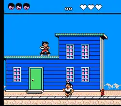 The player controls a skateboarding hero whose girlfriend, Bunny, has been kidnapped by Demon Dan. An introduction screen shows Bunny shackled and pleading for help. The hero must use his skateboard and any objects he finds, such as balloons, frogs, bombs, and bottles, to defeat ninjas, clowns, and disgruntled dockworkers before finally confronting the villainous Demon Dan. Between levels, the girlfriend's clothes fall apart, and when the second-to-last level is completed, she is in her underwear.