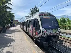 The Circumvesuviana railway network includes the following sections: Botteghelle-San Giorgio a Cremano, Naples-Nola-Baiano, Naples-Ottaviano-Sarno, Naples-Pompeii-Poggiomarino, Pomigliano d'Arco-Acerra and Torre Annunziata-Sorrento. The overall length of the six relations is 142.367 km for a total extension of 203.447 km.[4] All reports are Italian narrow gauge (950 mm); there are a total of 96 stations, with a density of one station every 1.5 km, all with railway platforms.[5] Tourist services are also available on the network: Sorrento Express, connection between Naples and the centers of the Sorrento peninsula carried out with the first restored electromotives,[6] Napoli Express, connection between Naples and Sorrento carried out with a more modern electric train, and the Campania Express, which connects the stations of Naples, Herculaneum, Pompeii and Sorrento with a Metrostar train.[7] The entire Circumvesuviana network carries about 70,200 travelers a day for a total of nearly 26 million passengers a year.[8]