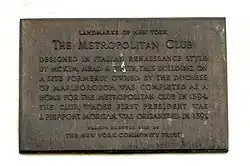 - Selden-Sturgill, Ruth (September 11, 1979). Metropolitan Club Building (PDF) (Report). New York City Landmarks Preservation Commission.