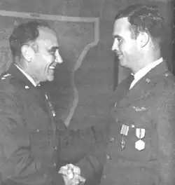Captain Michael E. Ryan receiving the Distinguished Flying Cross from his father, General John D. Ryan in 1969.