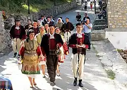 Their ethnonym is unclear.[2] There is a theory that the Mijaks were the first to permanently settle this area; they found mostly Vlachs, who seem to have not been permanently settled; the Mijaks pushed the Vlachs out of the pasture lands, while some of the Vlachs were assimilated.[3] According to another theory the Mijaks are the remains of an old Slavic tribe that inhabited the area of the Salonica field and was engaged mostly in the cattle breeding.[4] This theory is also confirmed by the legends for the founding of one of the most significant Mijak settlements as Galičnik.[5]