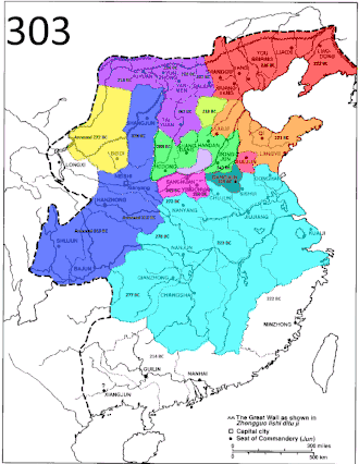 Territorial expansion of the Qin dynasty from 303 BC to 214 BC