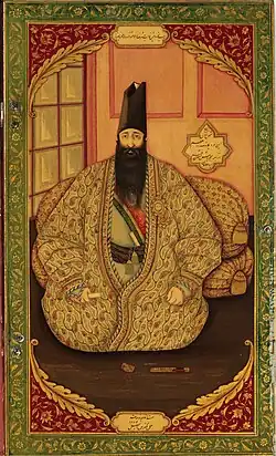 Mirza Aqa Khan Nuri as depicted on a mirror case, created in Isfahan in 1857/8. The image is possibly based on a watercolour by the well-known Qajar painter Abu’l-Hasan Ghaffari (Sani-ol-Molk)