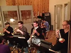 Trumpet section for Mists, l-r Jim Seeley, Nick Marchione, John Walsh and Scott Wendholt