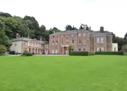 The old manor house burnt down in 1868 and was completely rebuilt as a farmhouse, categorised as a grade II listed building since 1955.[5] The ruins of a mid-16th century gatehouse lie to the south of the house; these and the adjoining garden walls, probably built in the mid-19th century at the same time as the farmhouse, are grade II* listed.[6][7] The house now has six reception rooms and six bedrooms. Around the courtyard are a cottage, stables and farm buildings. The River Otter forms part of the eastern boundary of the estate. In January 2014 the house with 228 acres was offered for sale for £3.5 million.[8]