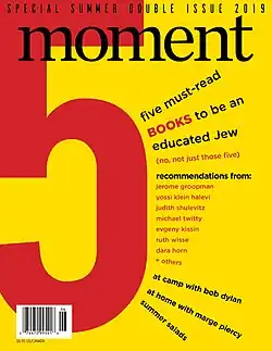 Moment is an independent magazine which focuses on the life of the American Jewish community. It is not tied to any particular Jewish movement or ideology.[2] The publication features investigative stories[3] and cultural criticism, highlighting the thoughts and opinions of diverse scholars, writers, artists and policymakers.[4][5][6] Moment was founded in 1975, by Nobel Prize laureate Elie Wiesel and Jewish activist Leonard Fein,[7] who served as the magazine's first editor from 1975 to 1987. In its premier issue, Fein wrote that the magazine would include diverse opinions "of no single ideological position, save of course, for a commitment to Jewish life."[8] Hershel Shanks served as the editor from 1987 to 2004.[9] In 2004, Nadine Epstein took over as editor and executive publisher of Moment.[10][11]
