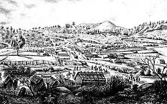 In 1905, the village had a "police station, hotel, three stores, public school, blacksmith's shop, three churches; a Chinese joss house, and private residences", and a population of ''about 700 Europeans and 23 Chinese.''[34] The Chinese temple (or 'joss house') and its burial ground stood on the left bank of the river, just downstream of the old ford.[44][46] The village had a public school from 1863 to 1963.[47][48]