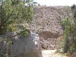 The Moruya Quarry, also known as the Government Quarry, opened in 1876 on the northern bank of the Moruya River. From 1925 to 1932, the Harbour Bridge works had 250 stonemasons employed and relocated to Moruya by the contractor to produce 20,000 cu yd (15,000 m3) of dimension stone[13] for the bridge pylons, 173,000 blocks, and 200,000 yards of crushed stone that was used as aggregate for concrete. Moruya granite was also used for the Sydney Cenotaph in Martin Place. During the seven years of this work, a small town of about 70 houses grew up near the quarry called Granitetown; little remains of the town today. The quarry had a tramway that closed in 1931.[14][15] The wharf that was used by the quarry stood until around 2008, but was pulled down and replaced by a fishing platform.[16][17]