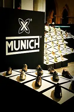 Munich (Catalan: [muˈnik], Spanish: [muˈnik]) is a Spanish company and brand specialized in sport and fashion shoes. The company headquarters are located in Capellades, province of Barcelona, Catalonia, Spain. Munich produces more than 850.000 pairs of shoes per year, 46% of sports type, and 54% of fashion type. The company has reached a privileged position in the field of fashion,[1] growing in many European and Asian countries, mainly Japan. The X symbol is what makes its shoes special and identifiable.