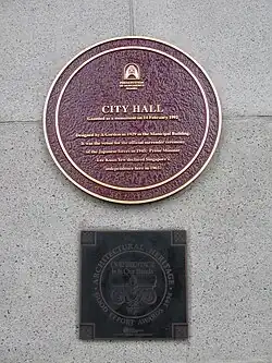 A plaque installed on the facade of the City Hall after it was gazetted as National Monument in 1992.