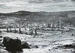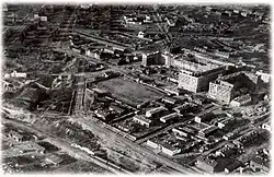 German forces in Finnish territory launched an offensive against Murmansk in 1941 as part of Operation Silver Fox. Fierce Soviet resistance and harsh local weather, with the bad terrain, prevented the Germans from capturing it. The Luftwaffe bombed the city 792 times during World War II.[22] Murmansk suffered extensive destruction, the magnitude of which was rivaled only by the destruction in Leningrad and Stalingrad.[23][24]