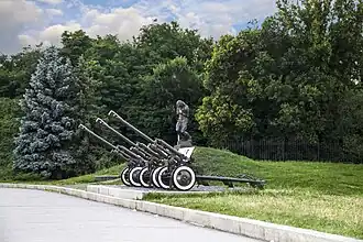 The National Museum of the History of Ukraine in the Second World War (Ukrainian: Національний музей історії України у Другій світовій війні)[a] is a memorial complex commemorating the German-Soviet War located in the southern outskirts of the Pecherskyi District of Kyiv, the capital of Ukraine, on the picturesque hills on the right-bank of the Dnipro River.