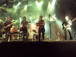 By 1999, as dissatisfaction grew with the concept of Cool Britannia, and Britpop as a movement began to dissolve, emerging bands began to avoid the Britpop label while still producing music derived from it.[9][10] Many of these bands tended to mix elements of British traditional rock (or British trad rock),[11] particularly the Beatles, Rolling Stones and Small Faces,[12] with American influences, including post-grunge.[13][14] Post-Britpop bands like The Verve, Radiohead, Travis, Stereophonics and Feeder, achieved much wider international success than most of the Britpop groups that had preceded them, and were some of the most commercially successful acts of the late 1990s.[14][15][16][17]