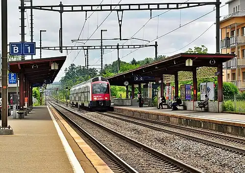 Nänikon-Greifensee is a railway station in the Swiss canton of Zurich. It is situated between the villages of Nänikon, in the municipality of Uster, and the town of Greifensee, within fare zone 130 of the Zürcher Verkehrsverbund (ZVV).[1] The station is on the Wallisellen–Uster–Rapperswil line.[2]