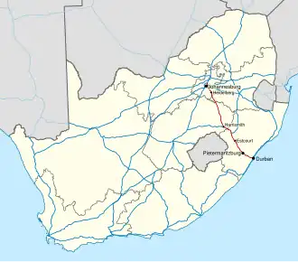 - ^ a b Falkner, John (May 2012). South African Numbered Route Description and Destination Analysis (Report). National Department of Transport. pp. 13–15. Archived from the original on 6 June 2014. Retrieved 12 August 2014.