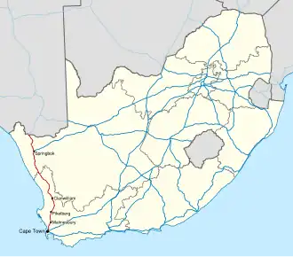 - ^ a b c d Falkner, John (May 2012). South African Numbered Route Description and Destination Analysis (Report). National Department of Transport. pp. 20–21. Archived from the original on 6 June 2014. Retrieved 12 August 2014.