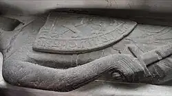 The Nanney family of Dolgellau are direct descendants of a royal dynasty, the House of Mathrafal and their Princes of Powys through Cadwgan ap Bleddyn, second son of Bleddyn ap Cynfyn (c. 11th century).[15][16][17] Cadwgan's son Madog ap Cadwgan became the 1st Lord of Nannau.[18] The 2nd Lord, Cadwgan ap Madog, was knighted by King Henry I of England in the Duchy of Normandy and married Gwenllian, a daughter of Owain Gwynedd (King of Gwynedd c.1137).[19] The title of Lord was passed on from father to son until the early 16th century. Following the creation of the title Lord of Nannau, a prominent member of the family who became the 5th Lord was known as Ynyr Hen ("old Ynyr").[20] His son Ynyr Fychan ("Little Ynyr") sided with the English crown during the Conquest of Wales by Edward I and was rewarded for the capture of Madog ap Llywelyn (1295) during the revolt against the new administration.[21] King Edward I also rewarded those who pledged allegiance by allowing them to keep their land. This marked the beginning of the Nannau estate dynasty. The effigy of the 7th Lord, Meurig ap Ynyr Fychan (c. 14th century) is on display at St. Mary's Church, Dolgellau. Another son of Ynyr Fychan, Einion, later became the Bishop of St. Asaph.[20]