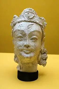 ![]() Head of a king or bodhisattva, stucco, Tepe Narenj, 3rd-6th century CE. | |