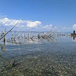 The Naryn (Kazakh: Нарын, Russian: Нарым, Narym) is a river in Eastern Kazakhstan, a tributary of the Irtysh, originating at the junction of the ridges Narym and Sarymsakty of wetland formed by the mountain runoff streams. With its low headwaters and smooth clay-sandy bed, the width of the river valley at places extends to more than 20 kilometres (12 mi); in some places it narrows to 25 to 250 metres (82 to 820 ft). The width of the river is 15 to 25 metres (49 to 82 ft), and the depth varies from 0.5 to 2.5 metres (1.6 to 8.2 ft).