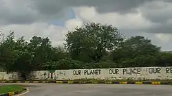 Protest art on boundary wall of NARC against converting its land into a residential housing society
