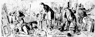 An 1847 Punch cartoon by John Leech depicting the restoration controversy then ongoing