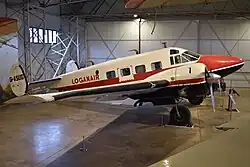 The displays included several aircraft on loan, including de Havilland Dragon Rapide (G-ADAH), BA Swallow (G-AEVZ) and Fairey Delta 2 WG774.[3] In 1979 a temporary exhibition about the R34 airship was mounted, followed by Fighters of the RFC and RAF, 1914 to 1940 the following year. The 1981 temporary exhibition was The Flight of Rudolf Hess 1941.[4]