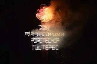 The National Pyrotechnic Festival lasts for seven days and attracts more than 100,000 visitors to the municipality, bringing in anywhere from five to ten million pesos.[1][2] Although the event started locally, it is now open to all fireworks makers in Mexico, especially attracting craftsmen from San Pedro de la Laguna, San Mateo Tlalchichilpan, and Almoloya de Juárez.[2][3]