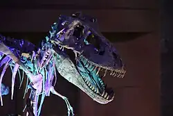 Mounted cast of a Tyrannosaurus bataar fossil in Mongolia; some experts maintain that the species should be named Tarbosaurus bataar instead