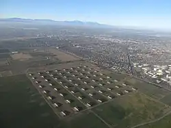 An aerial view of Naval Weapons Station Seal Beach munitions loading, storage and maintenance facility