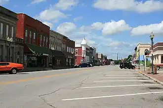 Nevada Downtown Historic District is a nationally recognized historic district located in Nevada, Iowa, United States. It was listed on the National Register of Historic Places in 2003.[1] At the time of its nomination it consisted of 39 resources, which included 33 contributing buildings and six non-contributing buildings.[2] The district takes in the city's central business district. Its period of significance starts with the relocation of the railroad depot to the head of 6th Street in the 1870s and continues through the late 1920s, when the town undertook several projects in a spirit of civic boosterism.[2] The buildings here are one to three stories tall and are all masonry construction. The architectural designer, Hethe Hanson, included popular styles from the period: Italianate, Queen Anne, Neoclassical, Prairie School, American Craftsman, and vernacular forms. They housed retail shops, hotels, banks, restaurants, fraternal halls, and a creamery.