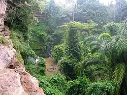 A predominant natural feature in Koforidua is the 'Obuo Tabri' Mountain, which is considered sacred. Nearby is Akosombo Dam which holds Lake Volta, the world's largest man-made lake. Waterfalls in the area such as Akan Falls and Boti Falls and the Umbrella Rock attract tourists to New Juaben Municipal District and Eastern Region.