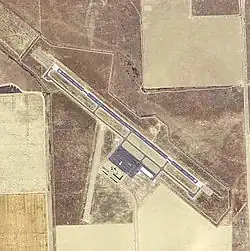 The original Coalinga Municipal Airport was about 0.5 mile (1 km) north of the town center, just north of Cambridge Avenue and west of East Elm Avenue. It opened sometime in the 1920s.[2] As of 2024 traces of it could still be seen on aerial photographs and satellite images. The New Coalinga Municipal Airport was built in the late 1990s east of the town center, with an entrance road from West Phelps Avenue.
