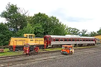 The company initially began operations on a 9-mile (14 km) railroad line between North Stratford and Columbia, New Hampshire, previously operated by the North Stratford Railroad.[1][3] The NHCR also has rights to operate two other lines in New Hampshire: the Groveton Branch between Groveton and Whitefield, and the Berlin branch between Whitefield and Littleton.[2] Interchange is with the St. Lawrence and Atlantic Railroad in North Stratford and Groveton.[3]
