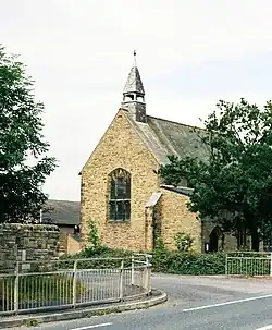 The plan of the church consists of a nave with a south aisle, and a chancel with a vestry to the north. At the west end is a slated bellcote. Under the east window is flushwork. Inside the church, between the nave and the aisle, is a four-bay arcade carried on clustered piers. The stained glass was made by Abbott and Company in 1935.[5] The two-manual organ was built in 1882 by John Laycock of Keighley, and has since been overhauled by J. W. Walker.[6]