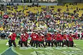 The drum major of the band uses a tewhatewha, a long-handled Māori club weapon in the shape of an axe, instead of a mace to give direction and keep time. More recently, a Haka display group was attached to the band.[16]