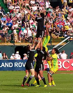 Lineout for New Zealand playing Australia at the Dubai Women Sevens tournament in 2012