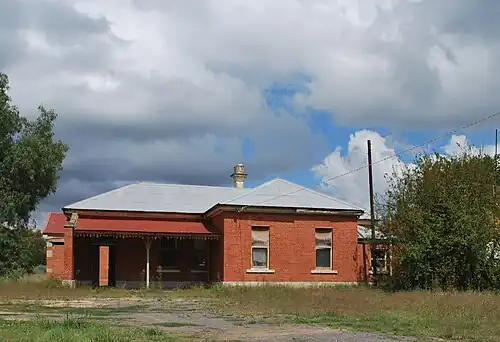 Newstead Station was opened on Tuesday, 7 July 1874. Although no longer in use, Newstead retains a bricks station building, booking office, platform and goods shed. On Friday 17 December 2004, the line from Moolort to Maldon junction was closed, due to the line being reserved for the Victorian Goldfields Railway to operate between Maldon and Castlemaine.