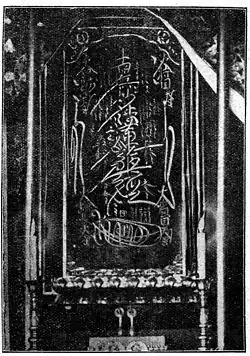 Photograph of the Dai-Gohonzon at Taisekiji, printed in Kumada Ijō's (熊田葦城) book Nichiren Shōnin (日蓮上人), 8th edition, p, 375, originally published in 1911.