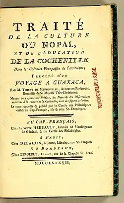 1. ^ According to the title page of his Traité de la culture du nopal et de l'education de la cochenille dans les colonies françaises de l'Amérique, précédé d'un Voyage à Guaxaca Paris/Bordeaux, 1787.