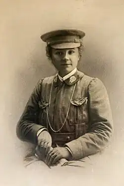 Soon afterwards, she confronted her superior officer over her lack of rank and pay. After several months, she was promoted to Doctor Major, 2nd Class and awarded backpay.[3] In 1917, she was promoted to the rank of doctor-captain and was appointed to be director of a training program for nurses at the Edith Cavell Hospital in Paris.[1]