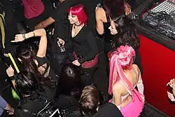 Nightclubs that feature laïkó music in Greece are popularly called bouzoukia (deriving from the plural of the main Greek instrument bouzouki). They typically have a raised stage ("pista") where singers, dancers and musicians perform, and a series of closely spaced long tables at right angles to the stage so that every guest can see the show. As there is little space between the tables, customers and waiters have trouble moving around.