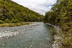 The Nina River is a river of the north Canterbury region of New Zealand's South Island. It flows predominantly east from its source within Lake Sumner Forest Park, veering southeast shortly before it flows into the Lewis River 35 kilometres (22 mi) west of Hanmer Springs.